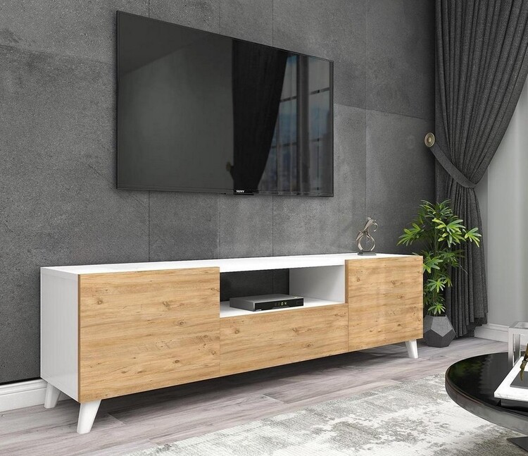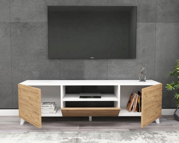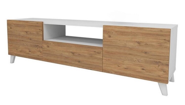 Televizní stolek dvoudveřový je vyroben z kvalitní desky LTD nenáročné na údržbu, v barevném provedení bílá/borovice. Tloušťka materiálu – 18 mm. Dodáváme v demontovaném stavu.CASA 36062