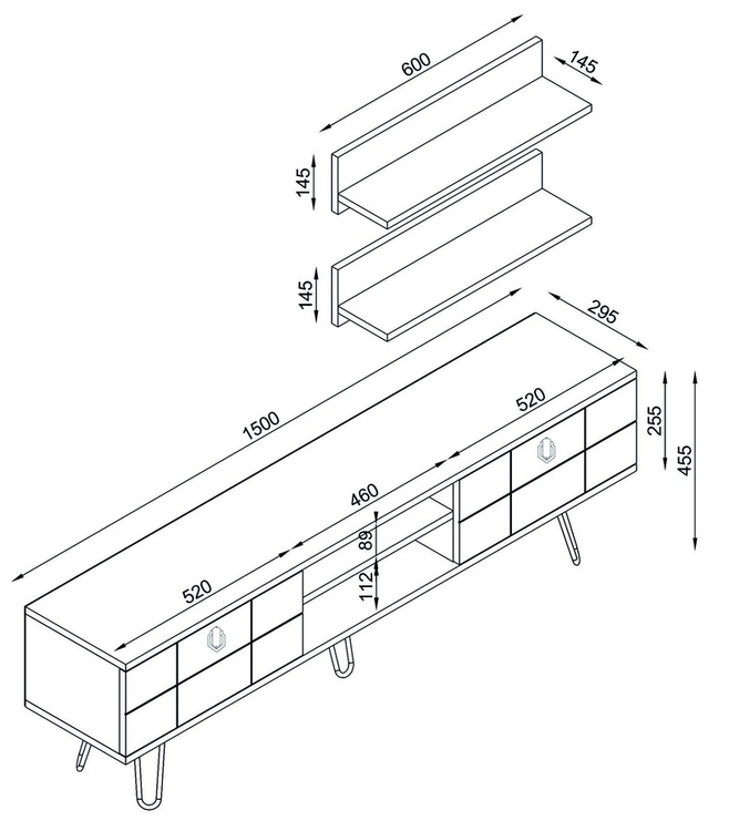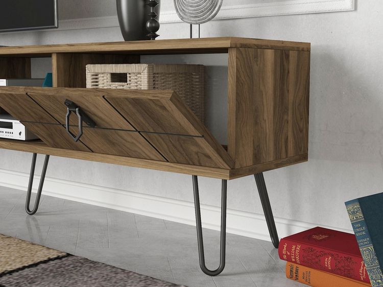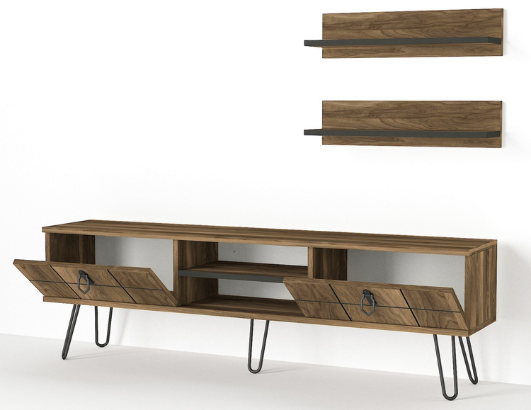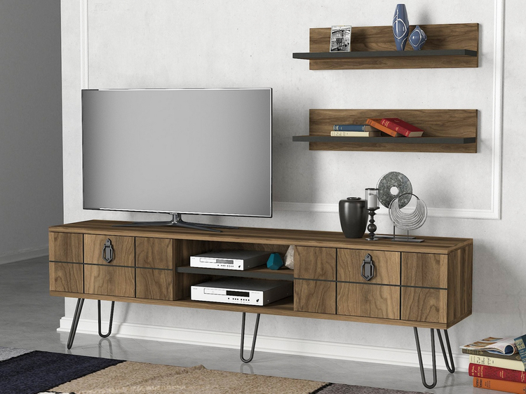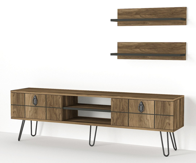 Televizní stolek s výklopnými dvířky je vyroben z kvalitního lamina o tl.18 mm hraněné PVC páskou, odolného proti poškrábání v barvě vlašský ořech. Součástí balení jsou také dvě závěsné police o rozměrech (Š x V x H cm) 60 × 14,5 × 14,5 cm. Dodáváme v demontovaném stavu.CASA 28062