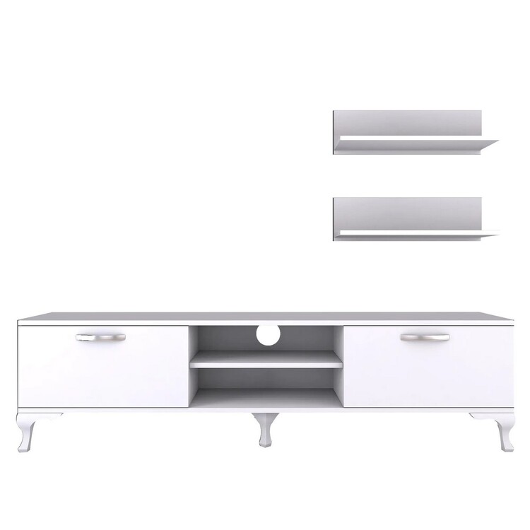 Stylová obývací stěna navržená v čistém skandinávském stylu, která perfektně zapadne do Vašeho obývacího pokoje. Její minimalistický design v bílé barvě přináší moderní a vzdušný vzhled.Materiál: Melamin, VT laminát a další kvalitní materiály. Barva: bílá. Sestava obsahuje – TV stolek (150 × 30 × 43,7 cm),2 závěsné police (50 × 13 × 15 cm). Tloušťka materiálu: 18 mm. Díky tomu je tato obývací stěna odolná a dlouhodobě udržitelná. Dodáváme v demontovaném stavu.CASA 92001