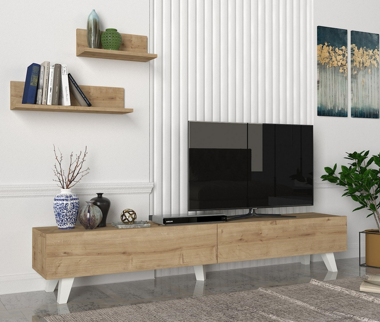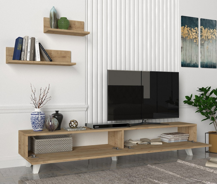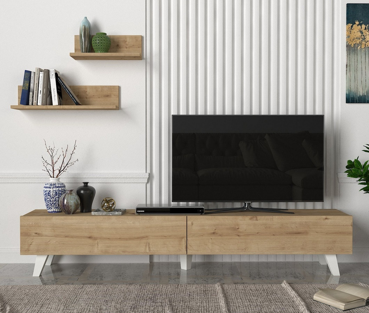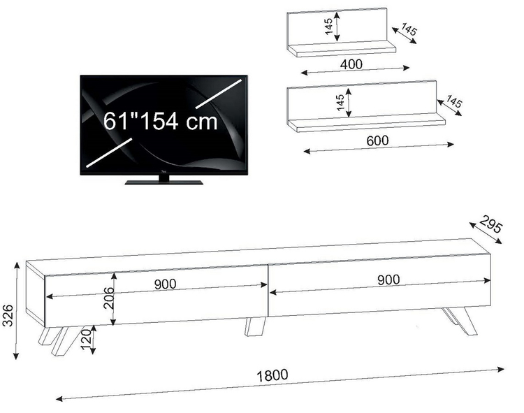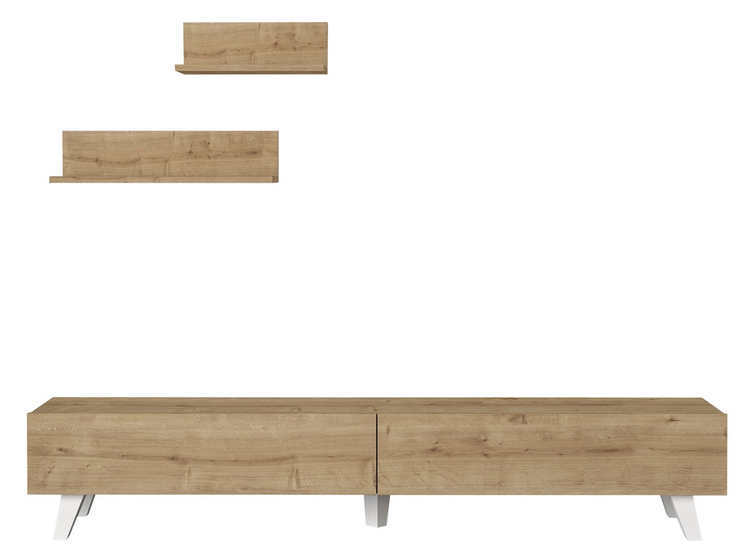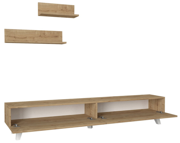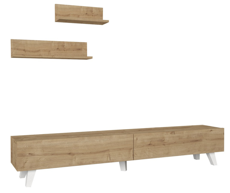 Televizní stolek s dvěma výklopnými dvířky je vyroben z kvalitního lamina o tl.18 mm hraněné PVC páskou, odolného proti poškrábání v barvě sapphire. Součástí balení jsou také dvě závěsné police o rozměrech (Š x V x H cm) 60 × 14,5 × 14,5 cm a 40 × 14,5 x14,5 cm. Dodáváme v demontovaném stavu.CASA 28004
