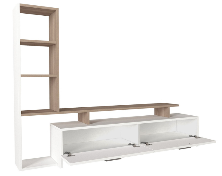 Televizní stolek s výklopnými dvířky a integrovaným regálem je vyroben z kvalitního lamina o tl.18 mm hraněné PVC páskou, odolného proti poškrábání v kombinaci barev matná bílá/cordoba. Dodáváme v demontovaném stavu.CASA 28071