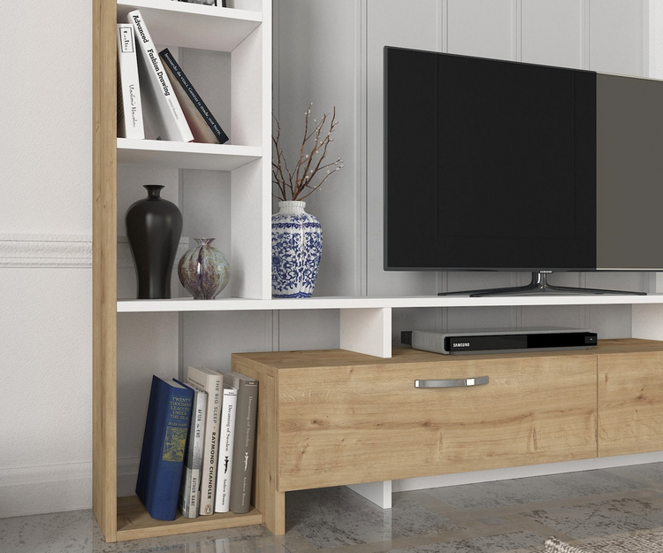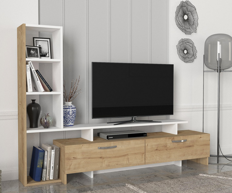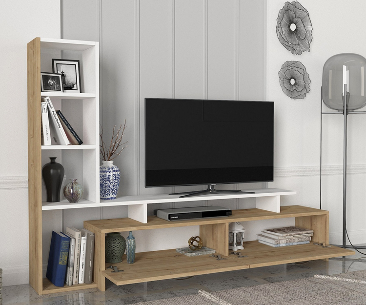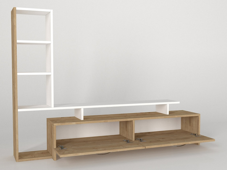 Televizní stolek s výklopnými dvířky a integrovaným regálem je vyroben z kvalitního lamina o tl.18 mm hraněné PVC páskou, odolného proti poškrábání v kombinaci barev sapphire/matná bílá. Dodáváme v demontovaném stavu.CASA 28071