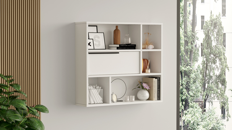 kombinuje moderní design a funkčnost. Díky závěsnému provedení šetří prostor a zároveň umožňuje snadný přístup k uloženým věcem. Plné dvířko skrývá vnitřní prostor, kde se nacházejí dvě praktické police pro organizaci předmětů. Skříňka se hodí do jakéhokoli interiéru a přináší elegantní řešení pro udržení pořádku.