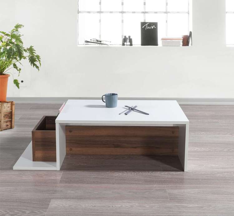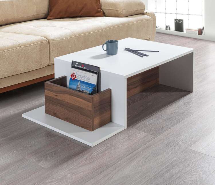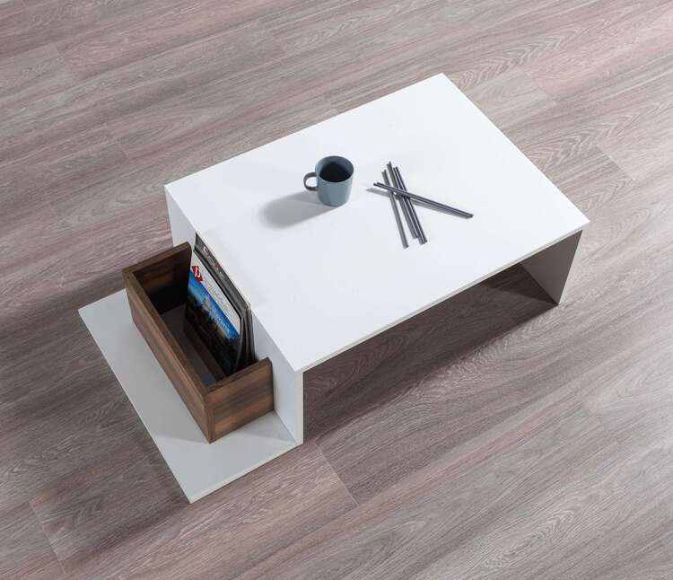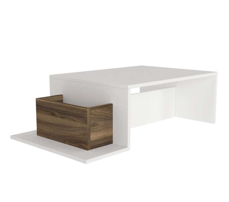 Konferenční stolek přináší eleganci a funkčnost do vašeho obývacího pokoje. Díky své kombinaci bílé a ořechové barvy se snadno začlení do jakéhokoli interiéru. Obdélníkový tvar a praktický regálek poskytují dostatek prostoru pro všechny vaše potřeby, ať už jde o knihy, dekorace nebo dálkové ovladače.