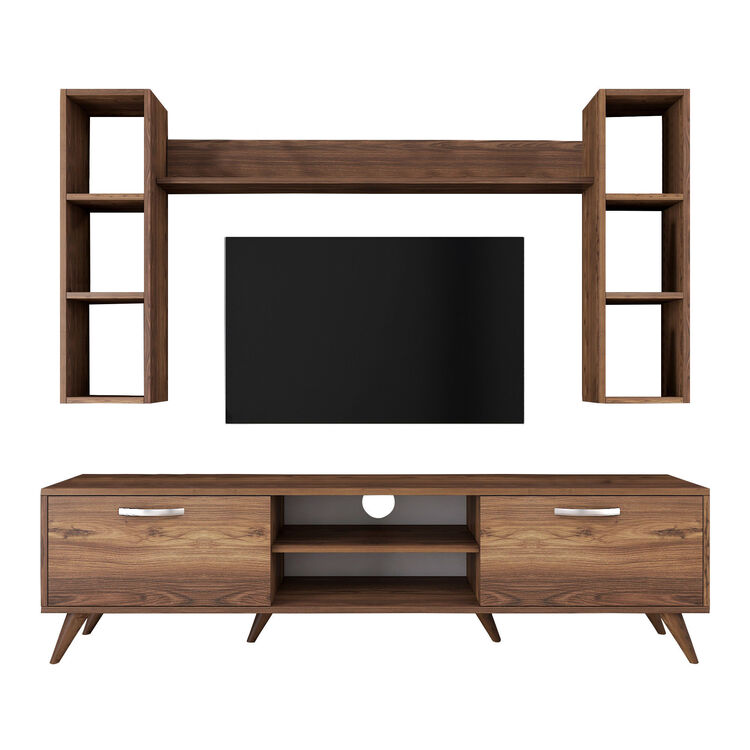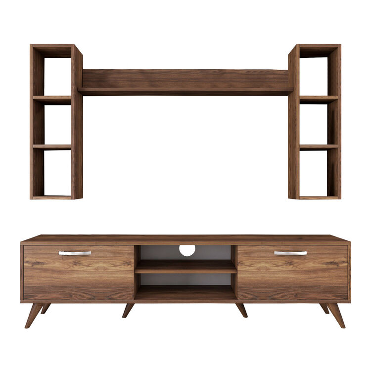 Obývací stěna je dokonalým řešením pro moderní a praktický obývací pokoj. Její elegantní design v dekoru ořechu přináší do interiéru útulnost a sofistikovanost. Díky chytrému uspořádání poskytuje dostatek prostoru pro multimediální zařízení, knihy a dekorace.