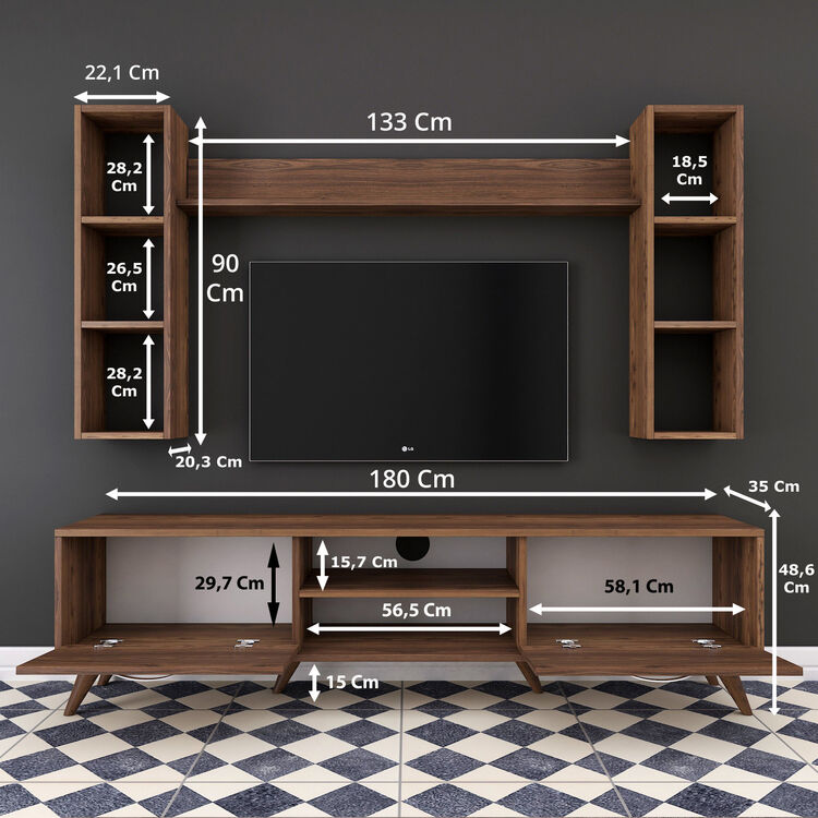 Obývací stěna kombinuje styl a praktičnost, čímž se stává ideální volbou pro každého, kdo chce vytvořit moderní a funkční prostor. Nabízí dostatek úložného místa a zároveň zvyšuje estetickou hodnotu vašeho interiéru.