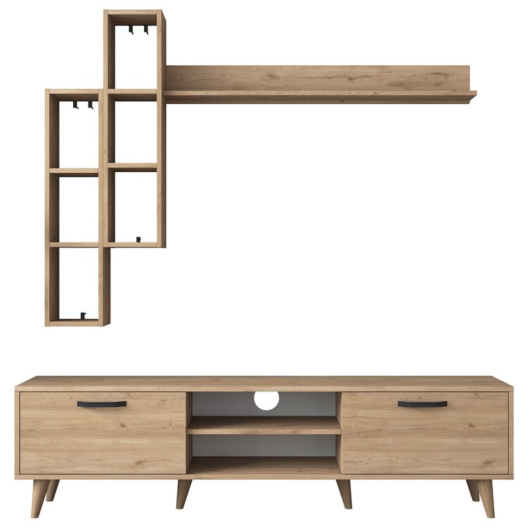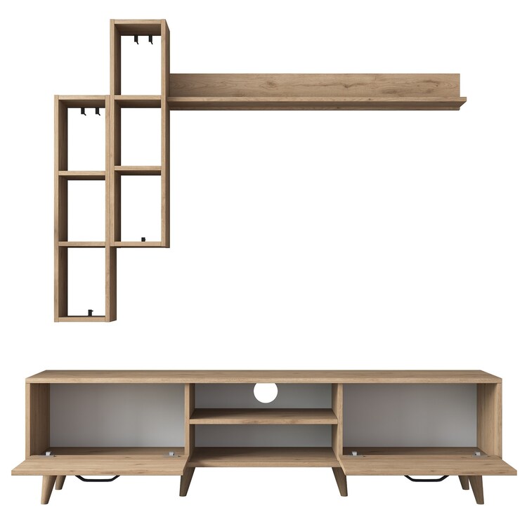 Obývací stěna je stylovým a praktickým doplňkem, který pozvedne vzhled vašeho obývacího pokoje. Vyrobena z kvalitního melaminu a VT laminátu v dekoru ořechu, přináší do interiéru přírodní eleganci a teplý vzhled. Sestava zahrnuje praktické úložné i vystavovací prostory, které vám pomohou vytvořit organizovaný a estetický domov.