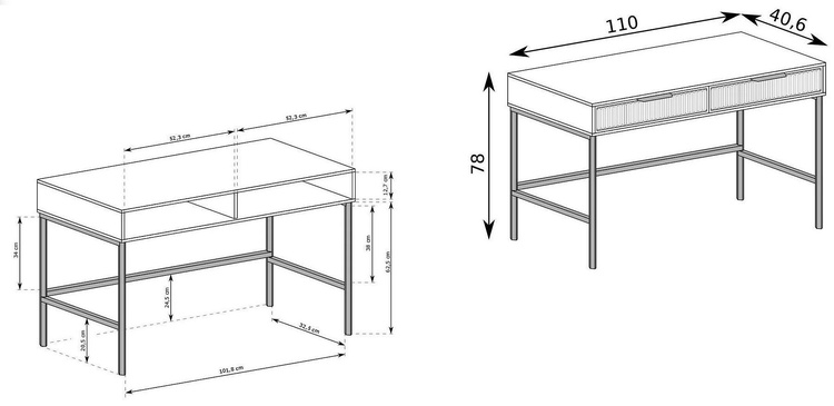 Moderní toaletní stolek s prostornými zásuvkami, což z něj činí velmi praktický kus nábytku.