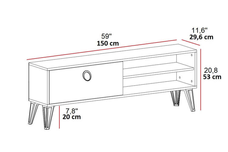 TV stolek je perfektní volbou pro ty, kteří hledají stylový a funkční nábytek do svého obývacího pokoje. Díky kombinaci plného dvířka a regálku nabízí praktický úložný prostor pro elektroniku, kabely nebo dekorace. Jeho moderní design a možnost připevnění na zeď z něj dělají všestranný doplněk do každého interiéru.
