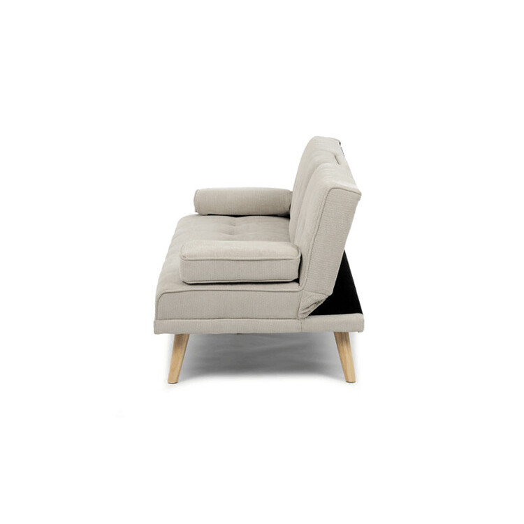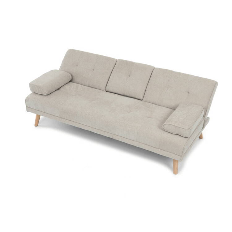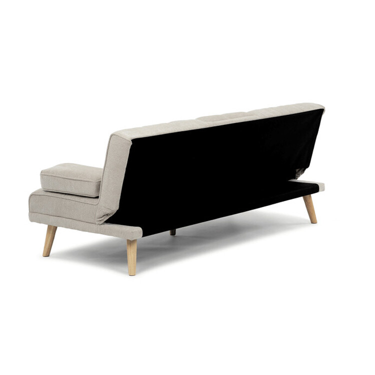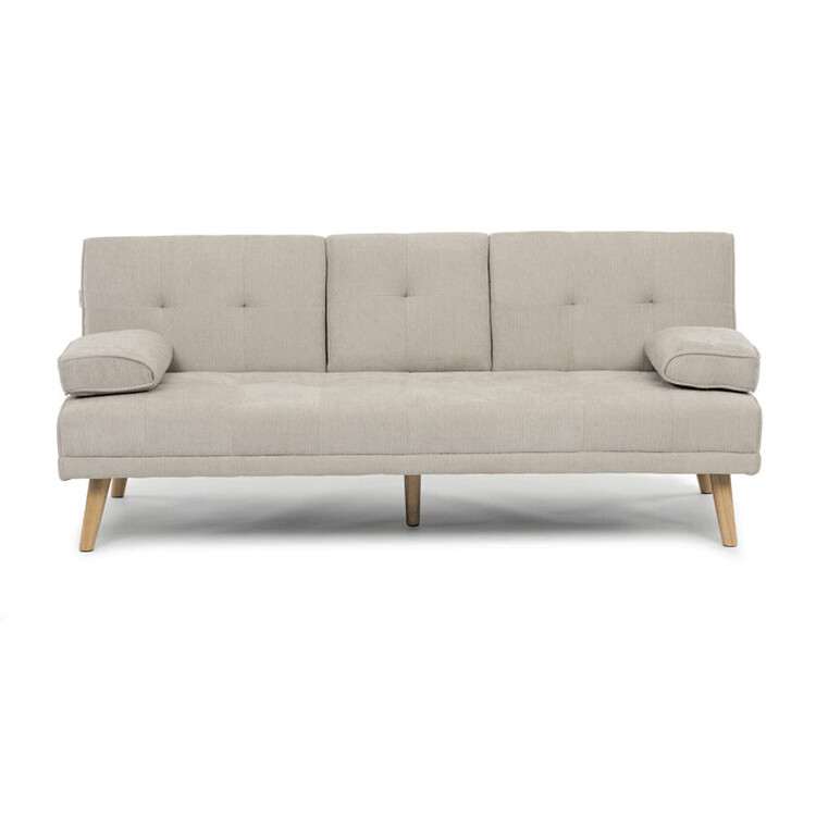Rozkládací trojmístná pohovka s označením ASB-C3034 CRM2 je čalouněná prémiovou béžovou látkou, která zajišťuje příjemný dotek a snadnou údržbu. Pevná konstrukce z masivního kaučukovníku poskytuje stabilitu a dlouhou životnost. Pohovka disponuje praktickou funkcí rozkladu click-clack, která umožňuje rychlé a jednoduché přeměnění sedací plochy na pohodlné lůžko. Součástí je také středový držák nápojů, který přidává na komfortu při odpočinku. Design doplňují elegantní dřevěné nohy v přírodním odstínu, které podtrhují moderní a zároveň nadčasový vzhled nábytku.