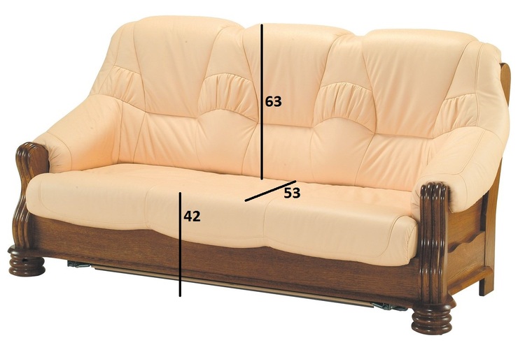 Elegantní rozkládací trojsedák, který svým vzhledem a provedením zaručuje luxus a pohodlí. Tento trojsedák vyrábí značkový výrobce, který si potrpí na kvalitě a detailech. Trojsedák je rozkládací, plocha po rozložení je 140 × 190 cm. Trojsedák je vyrobený z potahové látky s širokým výběrem barev. Zadní strana je potažena černou látkou, za příplatek lze zajistit sedačku celočalouněnou. Nohy jsou vyrobeny z masívního dubového dřeva s výběrem moření. Dřevo je třeba čistit suchým měkkým hadříkem, je možné též používat prostředky na konzervaci a ochranu dřeva neobsahující silikon. Tento trojsedák můžete doplnit o dvojsedák a křeslo. Nabízíme i výběr dalších potahových látek.CASA 33001
