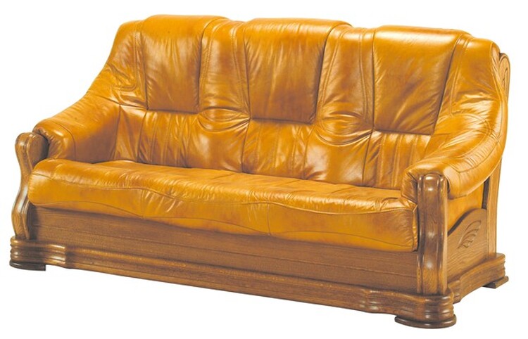 Elegantní trojsedák, který svým vzhledem a provedením zaručuje luxus a pohodlí. Tento trojsedák vyrábí značkový výrobce, který si potrpí na kvalitě a detailech. Trojsedák je vyrobený z nejkvalitnější pravé kůže – lícové s širokým výběrem barev. Zadní strana je potažena černou látkou, za příplatek lze zajistit sedačku celočalouněnou. Výška sedu je cca 43 cm. Nohy jsou vyrobeny z masívního dubového dřeva s výběrem moření. Kožený nábytek je nutné čistit pouze za pomocí speciálních prostředků na čištění a konzervaci přírodních kůží, dřevo je třeba čistit suchým měkkým hadříkem, je možné též používat prostředky na konzervaci a ochranu dřeva neobsahující silikon. Tento trojsedák můžete doplnit o dvojsedák a křeslo. Nabízíme i výběr dalších potahových látek.CASA 33006