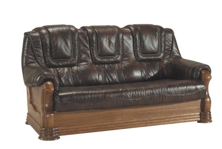 Elegantní trojsedák, který svým vzhledem a provedením zaručuje luxus a pohodlí. Tento trojsedák vyrábí značkový výrobce, který si potrpí na kvalitě a detailech. Trojsedák je vyrobený z nejkvalitnější pravé kůže – lícové s širokým výběrem barev. Zadní strana je potažena černou látkou, za příplatek lze zajistit sedačku celočalouněnou. Nohy jsou vyrobeny z masívního dubového dřeva s výběrem moření. Kožený nábytek je nutné čistit pouze za pomocí speciálních prostředků na čištění a konzervaci přírodních kůží, dřevo je třeba čistit suchým měkkým hadříkem, je možné též používat prostředky na konzervaci a ochranu dřeva neobsahující silikon. Tento trojsedák můžete doplnit o dvojsedák a křeslo. Nabízíme i výběr dalších potahových látek.CASA 33003