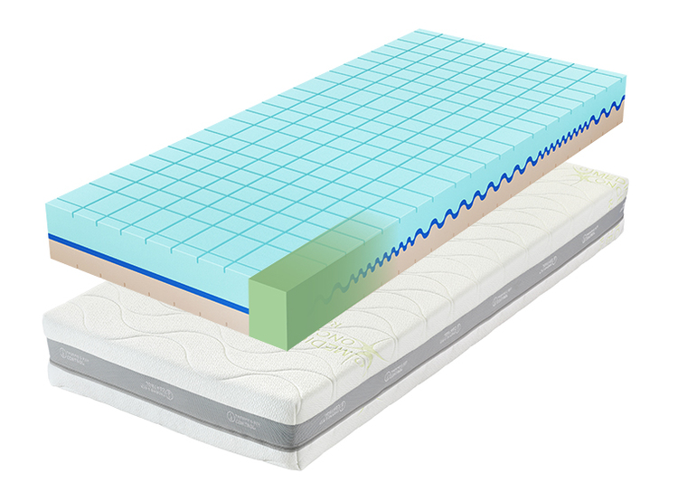 Vysoká ortopedická zónová matrace pro velké i malé, těžké i lehké. Varianta se zpevněným bokem pro lepší vstávání. S luxusním potahem dvojdílné konstrukce, s ventilační 3D mřížkou a 1 potahu s paměťovou pěnou.