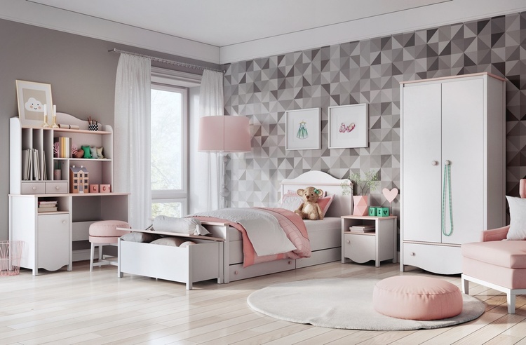 Truhlice MI-10. Truhlice má horní víko. Nábytek je vyrobený z kvalitního lamina ohraničené ABS páskou. Truhlice je v barvě bílé a růžové. V naší nabídce najdete mnoho dalších prvků této sestavy a tento široký výběr Vám zaručí sestavit si útulný dětský pokoj. Dodáváme v demontovaném stavu.CASA 73010