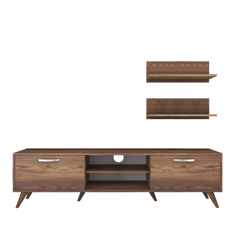 Obývací stěna je stylovým a praktickým řešením pro moderní obývací pokoj. Kombinace čistého designu a dekoru ořechu přináší do prostoru eleganci a útulnou atmosféru. Je ideální volbou pro ty, kteří hledají estetické i funkční vybavení.