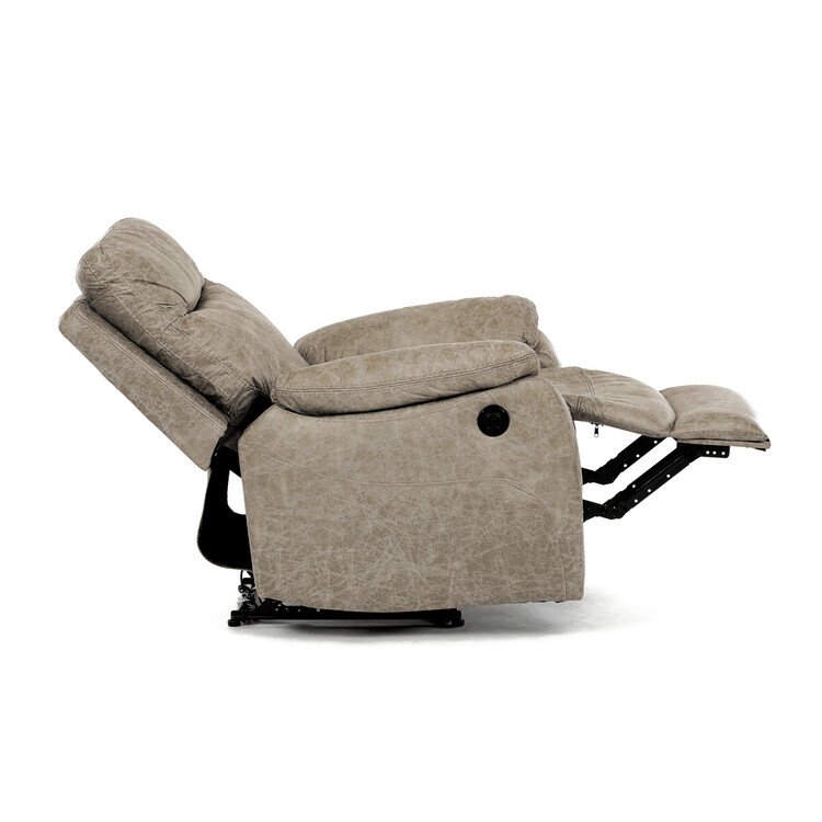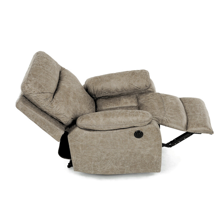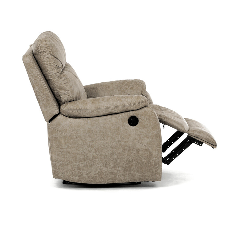 Toto moderní relaxační křeslo s elektrickým ovládáním přináší dokonalý komfort a stylový vzhled do Vašeho obývacího pokoje. Našemu křeslu díky jeho polohovací funkci a bezdrátovému ovladači (který Vás osvobodí od nepohodlného tahání kabelu) nedokáže konkurovat žádné jiné relaxační křeslo.Potah je z krémové látky v dekoru vintage, což dodává tomuto kousku nejenom stylový vzhled, ale také příjemný dotek a pocit luxusu. Velkou výhodou tohoto potahu je snadné čištění a dlouhá životnost.Toto křeslo je vybaveno jedním motorem 240V, který umožňuje hladké a tiché ovládání různých poloh. Bezdrátový ovladač pak zajišťuje pohodlné ovládání pohybů křesla.Toto elegantní křeslo nabízí skvělé proporce. S šířkou 90 cm, hloubkou 97 cm a výškou 103 cm je dostatečně prostorné pro nerušený odpočinek. Důležitouroli při dosahování luxusního pocitu hraje i příjemná výška sedu 50 cm.