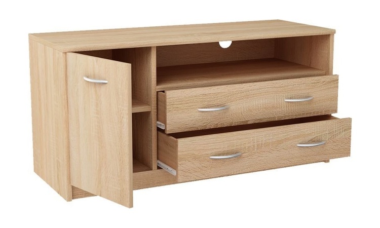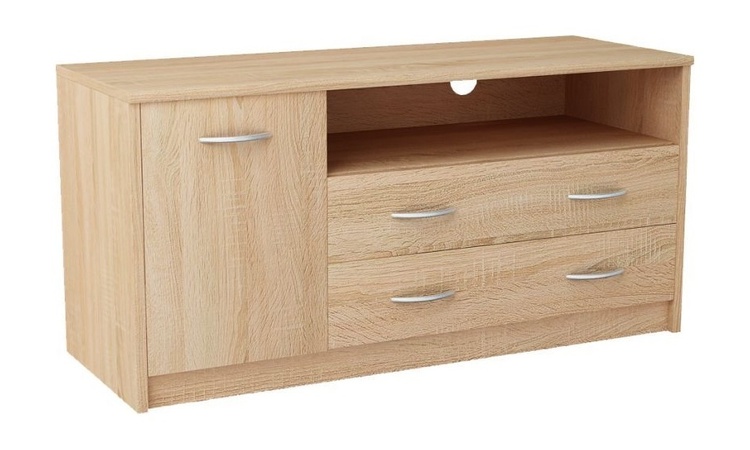 Televizní stolek v moderním provedení vhodný do menších prostoru. Obsahuje 1 dvířka a 2 praktické zásuvky. Korpus i dvířka jsou z kvalitní LTD (16 mm) v barvě dub sonoma. Lamino je odolné vůči vysokým teplotám, poškrábání a nárazům, hraněné ABS páskou. Jasně viditelná struktura dřeva. Dodáváme... více informací o zboží