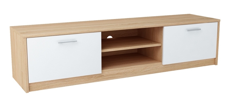 Dvoudveřový RTV stolek v moderním provedení. Korpus je v barevném provedení dub sonoma a dvířka jsou bílé barvy. Korpus i dvířka jsou vyrobena z kvalitního lamina. Lamino je odolné vůči vysokým teplotám, poškrábání a nárazům, hraněné ABS páskou. Jasně viditelná struktura dřeva. Dodáváme v... více informací o zboží