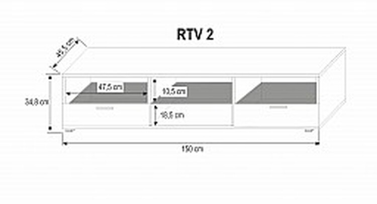 TV stolek RTV 2 je moderním a praktickým doplňkem do každéhoobývacího pokoje. Díky svému kompaktnímu rozměru 150 cm na šířku sehodí i do menších prostor, a přitom poskytuje dostatek místa protelevizor, elektroniku i uložení dalších věcí.