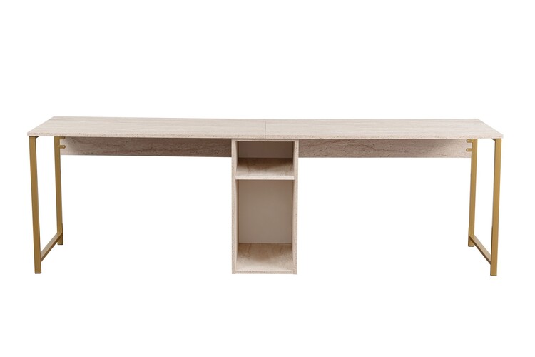 Twin Study Desk dvojitý psací stůl, traventin / zlatá