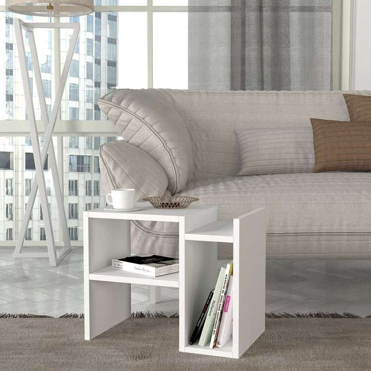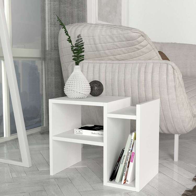 Stolek vyniká svým čistým bílým designem a obdélníkovým tvarem, který je nejen esteticky přitažlivý, ale i praktický. Díky regálku poskytuje dostatek úložného prostoru pro vaše knihy, časopisy nebo dekorace. Robustní LTD materiál o tloušťce 18 mm zajišťuje pevnost a dlouhou životnost tohoto stolku.