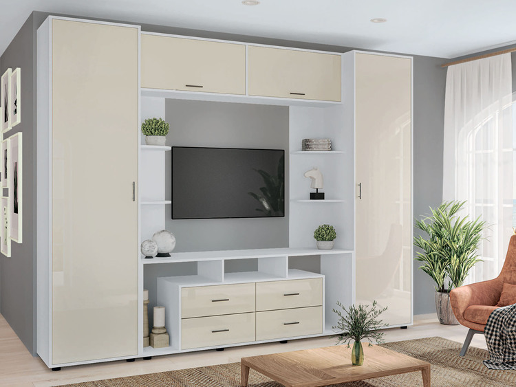 Obývací stěna je stylovým řešením pro moderní interiéry, kde je kladen důraz na design, funkčnost a výrazný vizuální efekt. Díky širokému provedení působí dominantně a zároveň poskytuje dostatek prostoru pro každodenní používání v obýváku.
