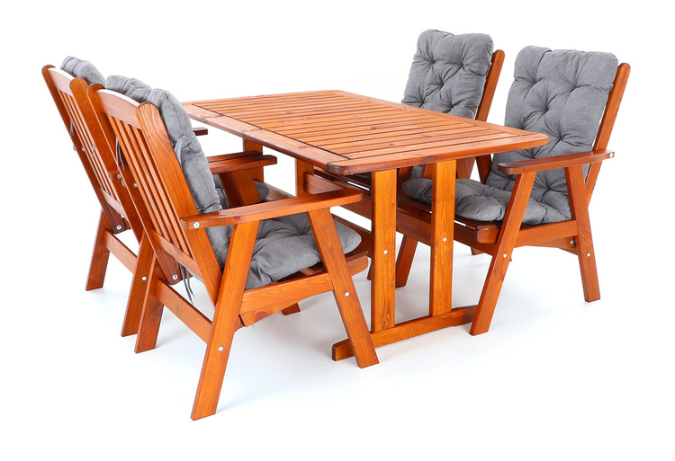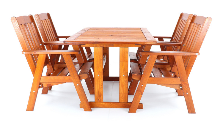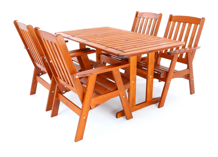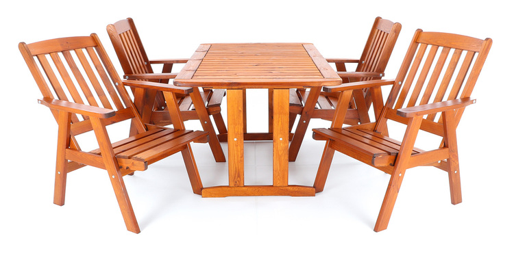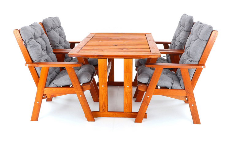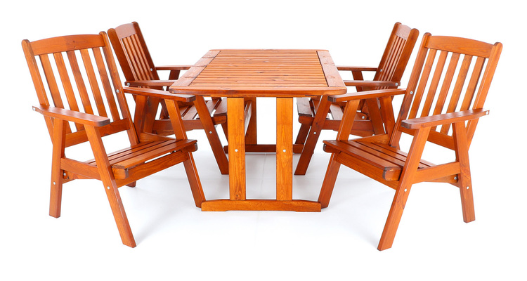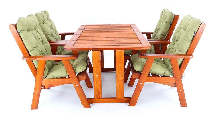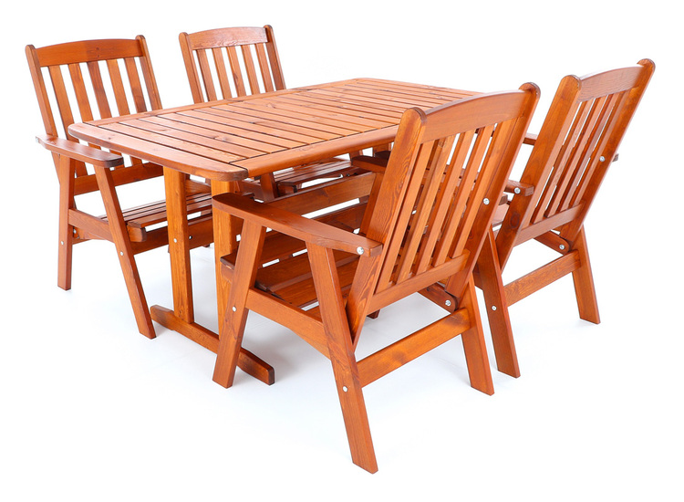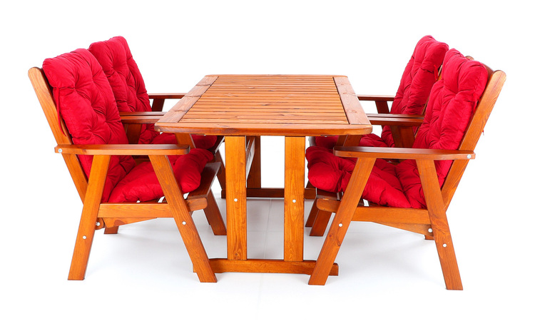 Stůl, křesla a lavice jsou dodávány v rozebraném stavu a jsou pečlivě
