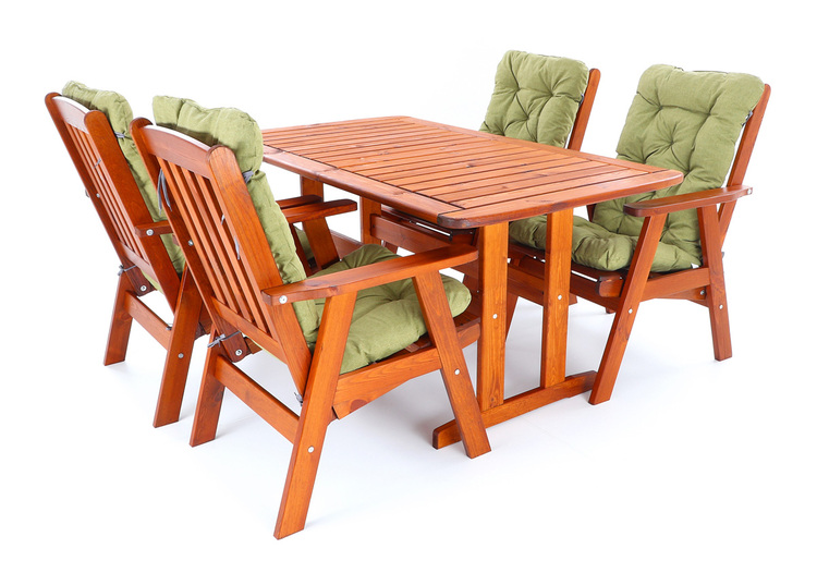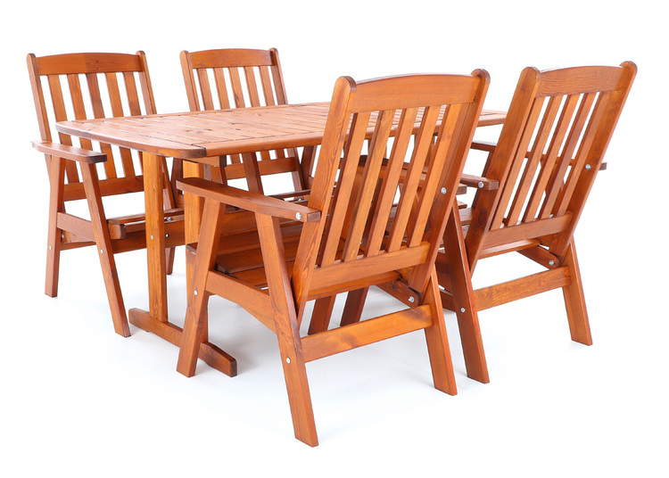 masivní stolová sestava čtyř polohovacích křesel a stolu z odolného a