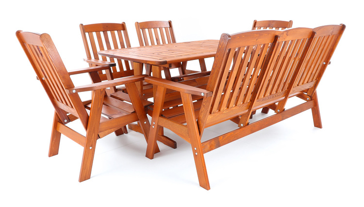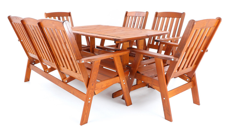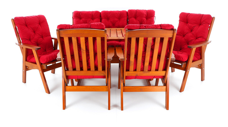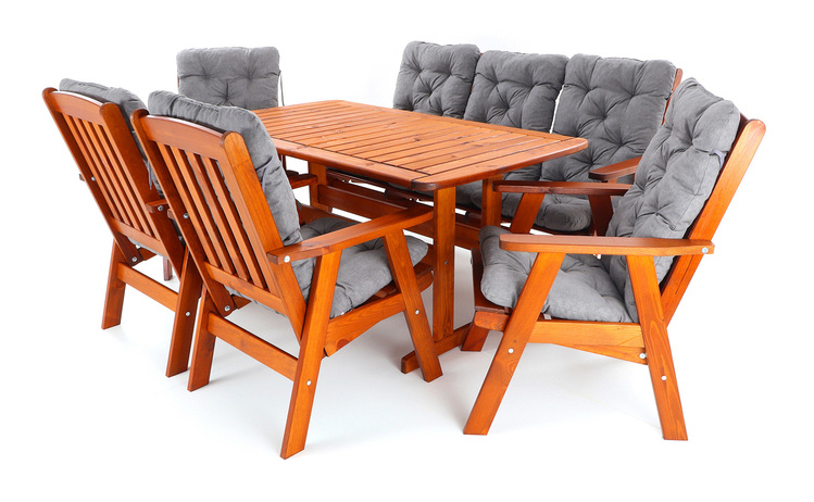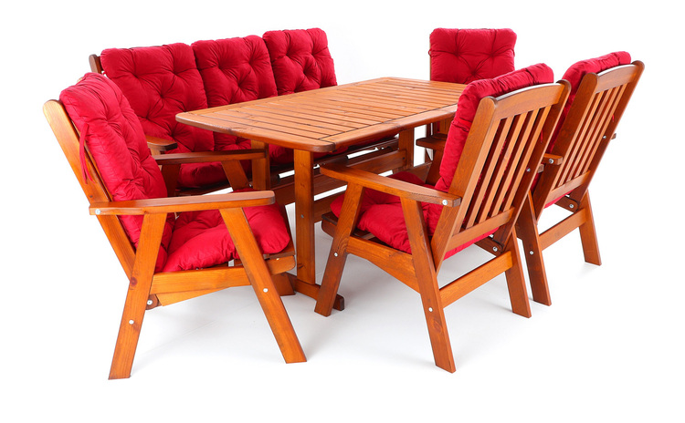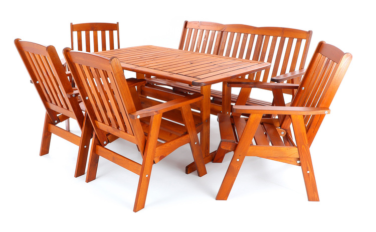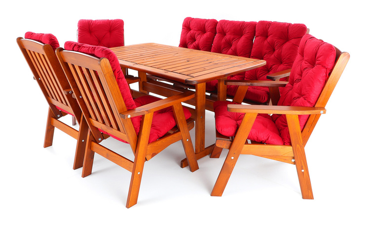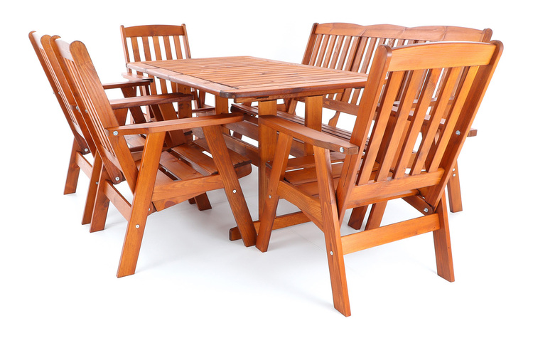 Stůl, křesla a lavice jsou dodávány v rozebraném stavu a jsou pečlivě