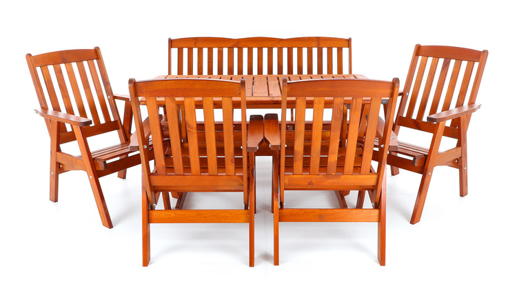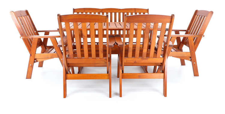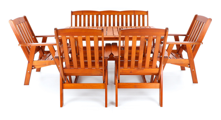 masivní stolová sestava čtyř polohovacíchkřesel, jednépolohovací lavice a stolu z odolného a