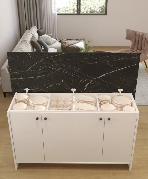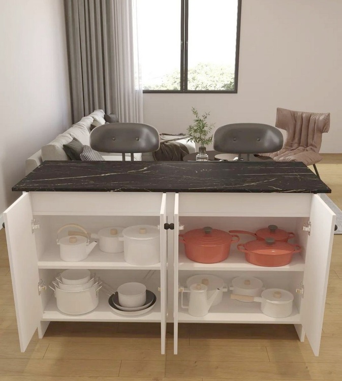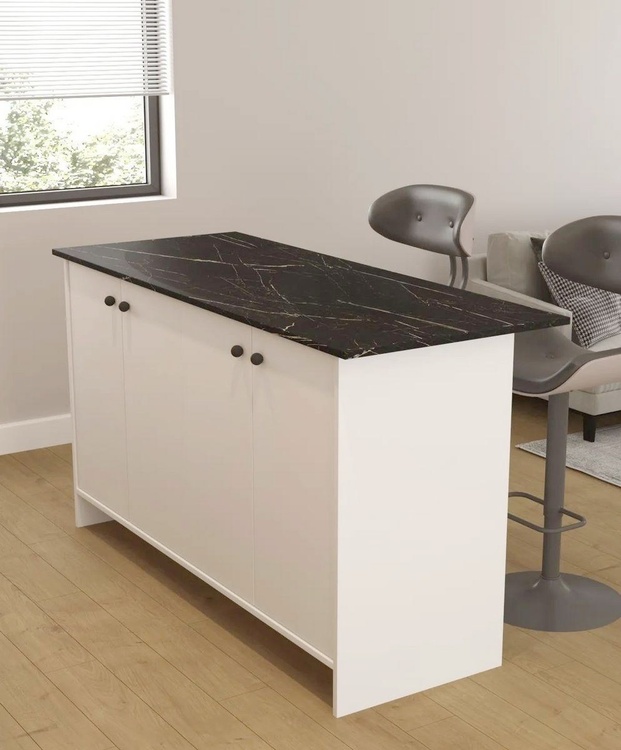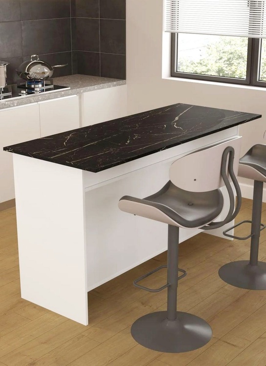 Kuchyňský ostrůvek s funkcí barovéhoi jídelního stolu se skříňkou, víceúčelový nábytek s rozměrem 160 × 65 cm.