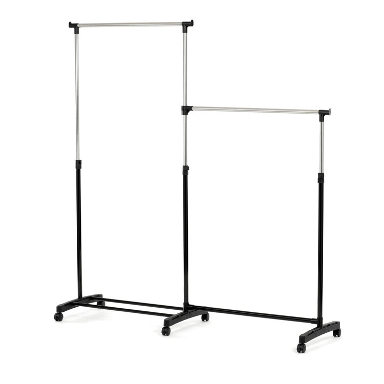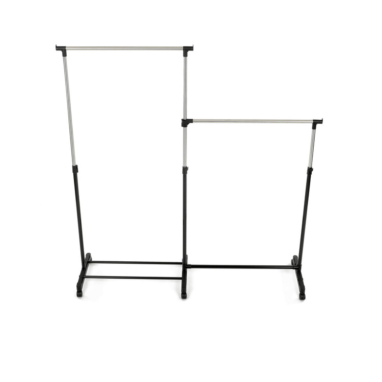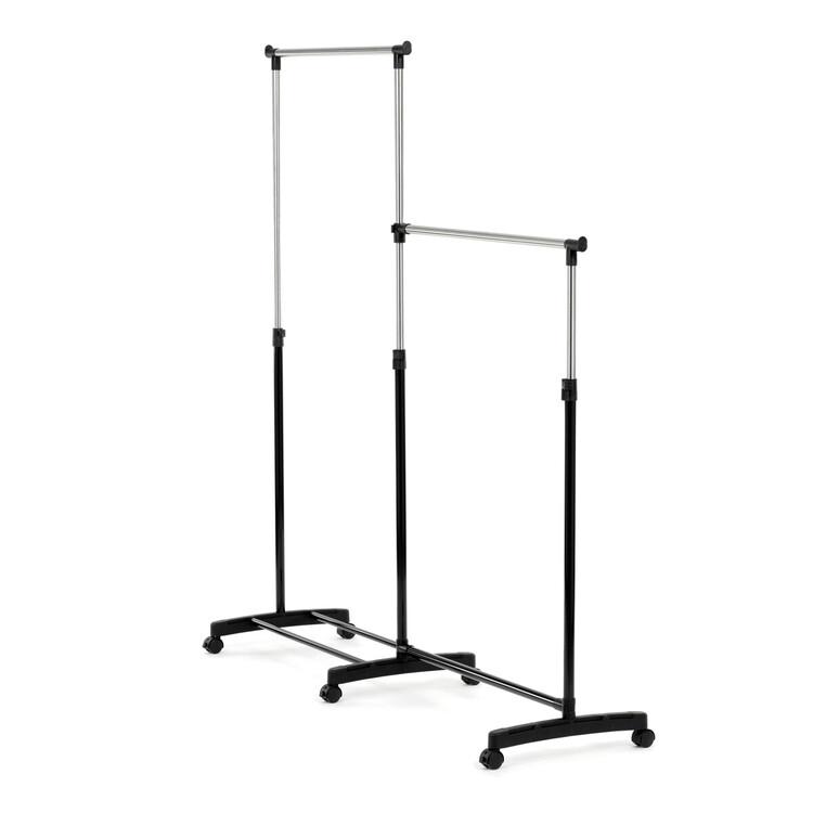 Dvojitý stojan na šaty značky Autronic je ideálním řešením pro maximální využití úložného prostoru. Stabilní kovová konstrukce v kombinaci s kolečky umožňuje snadnou manipulaci a vysokou nosnost. Dvě prostorné tyče poskytují dostatek místa pro zavěšení oblečení, ideální pro šatny, ložnice či předsíně. Minimalistický design v černém provedení se snadno přizpůsobí jakémukoliv interiéru. Díky své praktičnosti a flexibilitě je tento stojan perfektní volbou pro každodenní použití i sezónní organizaci šatníku.