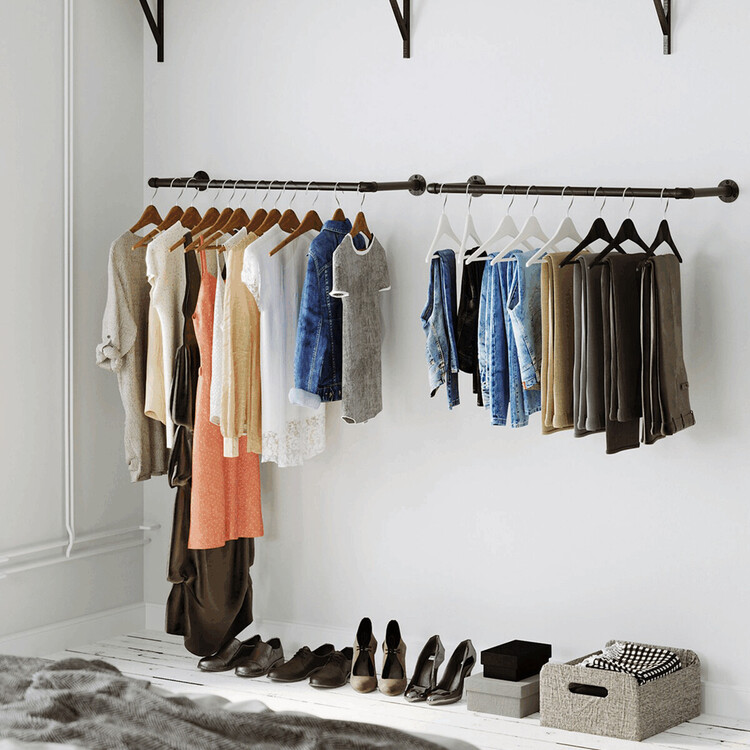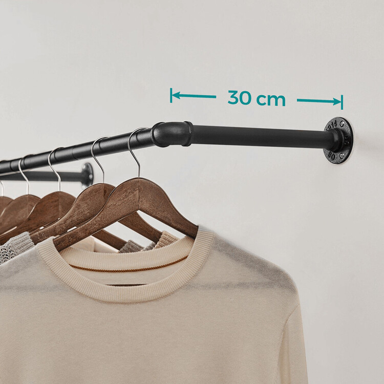 Nástěnný věšák na zeď v sadě dvou kusů je vyroben z pevného černého kovu a nabízí praktické řešení pro uspořádání oděvů či doplňků. Jeho jednoduchý a nadčasový design se snadno integruje do různých interiérů, od moderních po industriální styly. Věšák je tvořen dvěma samostatnými tyčemi s pevnými úchyty pro bezpečné připevnění na stěnu. Díky kovovému provedení je odolný a navržen pro dlouhou životnost. Montáž na stěnu šetří prostor a umožňuje efektivní využití stěn v předsíních, šatnách či komerčních prostorách.