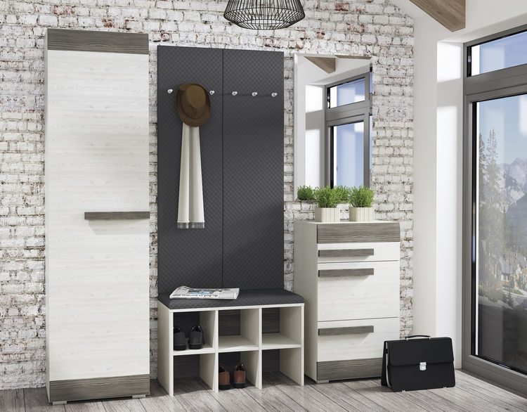 Věšák v moderním provedení potažený látkou v šedé barvě. Věšák je vyroben z kvalitní desky LTD hraněné ABS páskou. Dodáváme v demontovaném stavu.CASA 56027