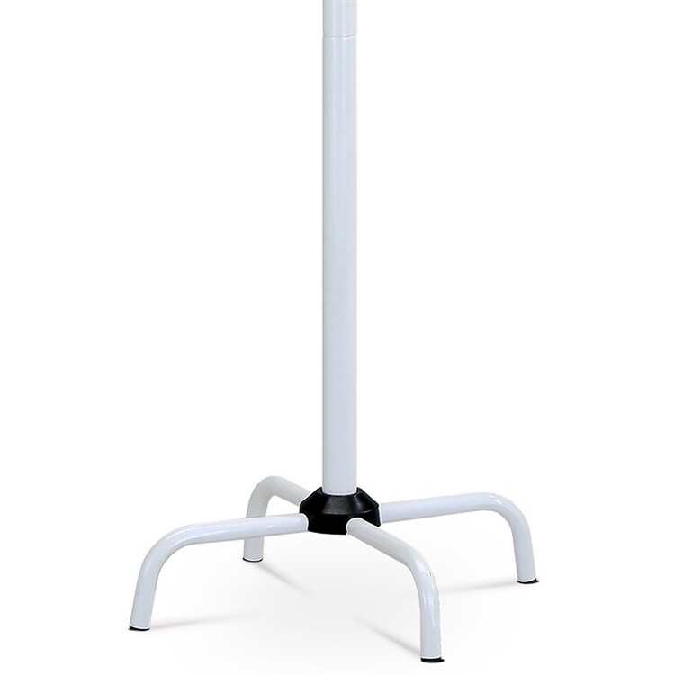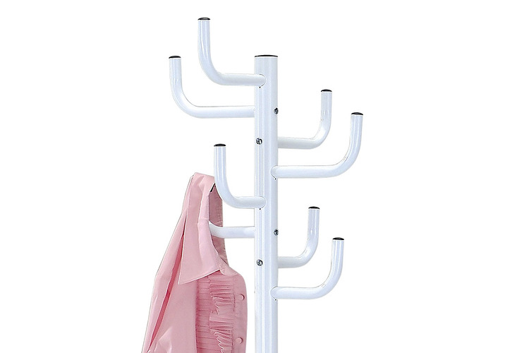 Stojanový věšák s kovovým tělem v bílém lesklém laku nabízí praktické řešení pro ukládání oděvů v předsíních, kancelářích či čekárnách. Disponuje celkem deseti háčky rozmístěnými ve třech úrovních, které umožňují efektivní využití prostoru pro zavěšení kabátů, šál či klobouků. Pevná kovová základna se čtyřmi nohami zajišťuje stabilitu a bezpečnost při používání. Výška 182 cm umožňuje pohodlné zavěšení i delších oděvů. Věšák je navržen s ohledem na dlouhou životnost a snadnou údržbu díky povrchové úpravě práškovým lakem.