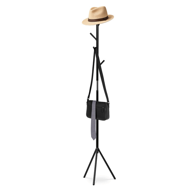 Elegantní věšák značky Autronic je ideálním doplňkem pro každý moderní interiér. Jeho minimalistický design v černé barvě s kovovou konstrukcí nabízí nejen vysokou odolnost, ale také snadnou údržbu. Stabilní základna na třech nohách zajišťuje bezpečné uchycení i při plném zatížení. Díky svému univerzálnímu stylu se skvěle hodí do předsíní, kanceláří i dalších prostor. Praktické háčky ve více výškách poskytují dostatek místa pro zavěšení oblečení či doplňků.
