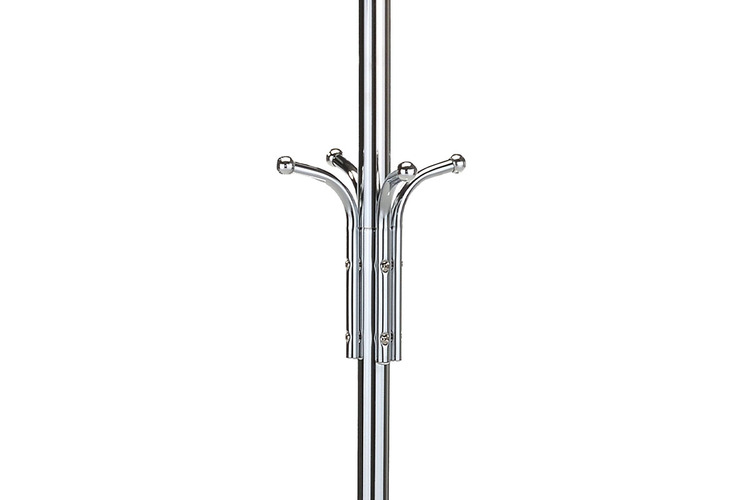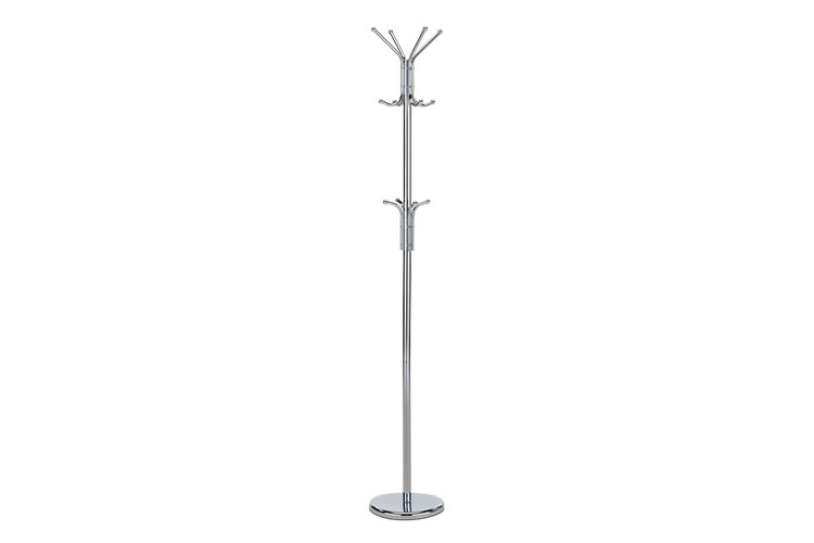 Stojanový věšák s výškou 182 cm je vyroben z pevného kovu s lesklou chromovou povrchovou úpravou, která zajišťuje odolnost a snadnou údržbu. Věšák nabízí celkem dvanáct háčků rozmístěných ve třech úrovních, což umožňuje efektivní uspořádání kabátů, klobouků i doplňků. Stabilní kruhová základna... více informací o zboží