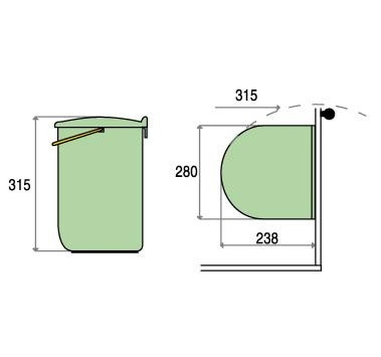 Vestavný odpadkový koš 210 je vestavný koš na odpadky o objemu 12 litrů určený k montáži na dvířka skříňky. Víko se otevírá ručně. Vestavný koš je vyroben z plastu. Montáž je velmi jednoduchá.
