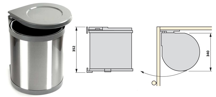 Místa v kuchyni není nikdy dost a většina z nás má ráda věci na svém místě, aniž by nám překážely. Nabízíme moderní řešení, které elegantně skryje odpadkový koš do kuchyňské linky. Kulatý odpadkový koš s jednoduchým mechanismem v provedení Inox – imitace nerezu. Vestavný koš se otevírá pomocí otočného mechanismu otevřením dvířek skříňky.