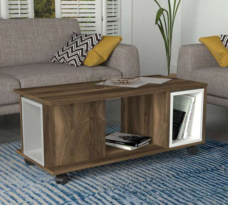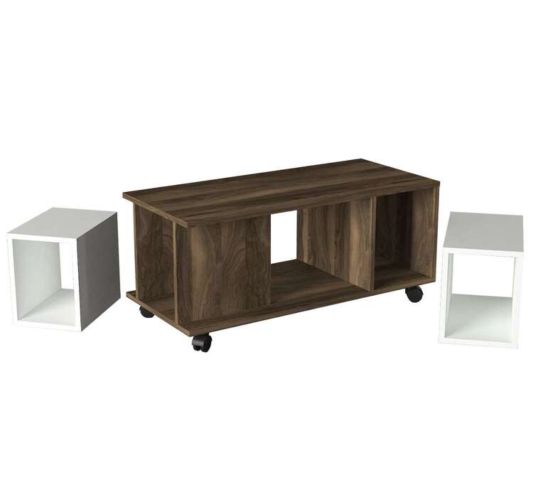 Stolek se pyšní elegantní kombinací bílé a ořechové barvy, která dodá vašemu obývacímu pokoji moderní a stylový vzhled. Jeho široký obdélníkový tvar poskytuje dostatek prostoru pro vaše dekorace, nápoje a další předměty.