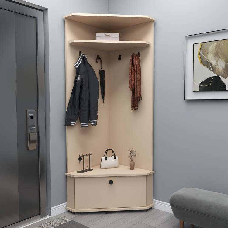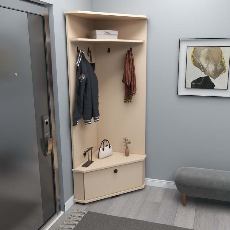 Předsíňová sestava přináší elegantní design a funkční uspořádání, které je ideální pro moderní domácnosti. Díky rohovému provedení efektivně využívá prostor a nabízí praktické vybavení, včetně věšákové stěny, skříňky na boty a police. Tato sestava vám pomůže udržet předsíň čistou, organizovanou a stylovou.