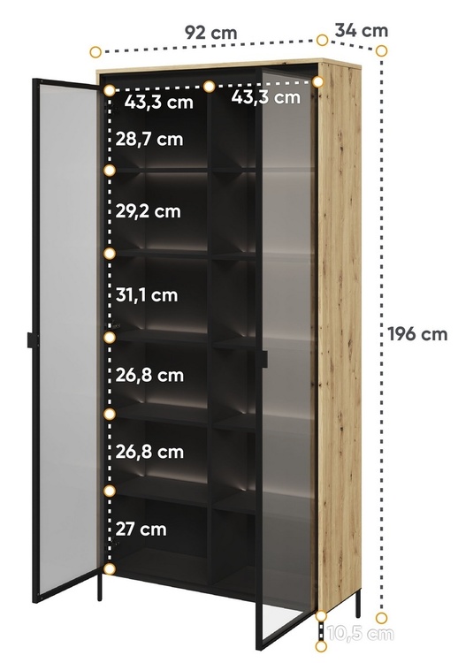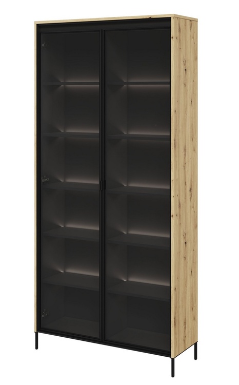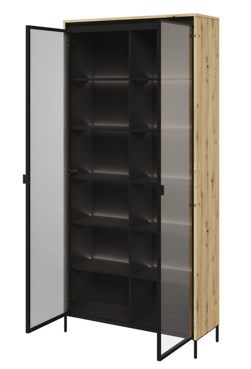 Vitrína 2D s LED IPOLIS dub artisan/černá