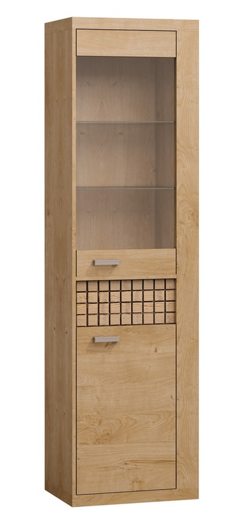 Vitrína má 2 dveře a 1 zásuvku. Jedná se o stylovou kolekci nábytku moderního stylu, který je vhodný do obývacího pokoje a ložnice. Barevné provedení dub ribbeck. Vsazením ozdobné kostičkované lišty je zvýrazněn rustikální vzhled masivního dřeva. Nábytek je vyroben z kvalitního lamina 16 mm,... více informací o zboží
