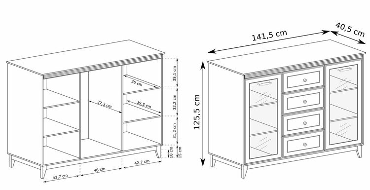 Díky čtyřem zásuvkám a dvěma proskleneným skříňkám s vnitřními