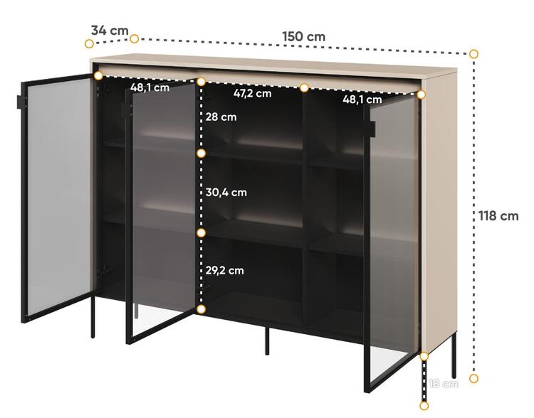 Kovové štíhlé pevné nožky černé barvy dodávají nábytku