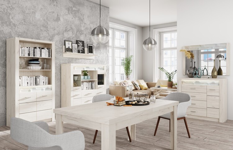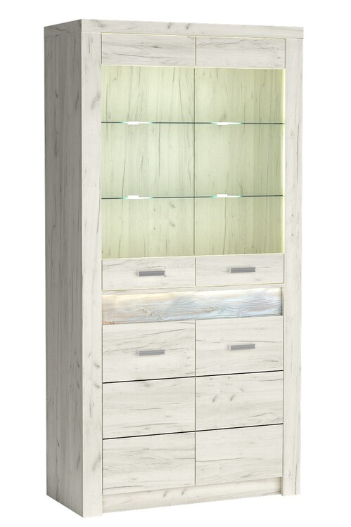 Vitrína ze sektorové řady. Za dvířky je 1 police. Systém je exkluzivní kolekce navržena v moderním duchu. Vsazením LED osvětlení do ozdobné rýhované lišty, které najdete v naší další nabídce k dokoupení, je zvýrazněn rustikální vzhled masivního dřeva. Možnost dokoupení LED bodového osvětlení i... více informací o zboží
