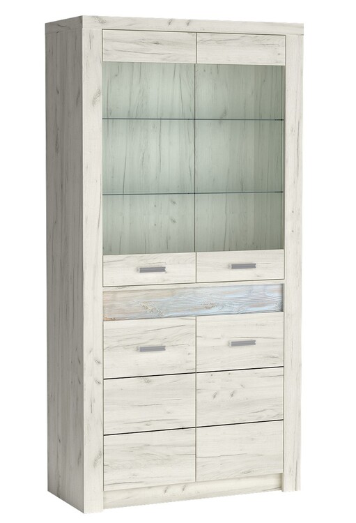 Vitrína ze sektorové řady. Za dvířky je 1 police. Systém je exkluzivní kolekce navržena v moderním duchu. Vsazením LED osvětlení do ozdobné rýhované lišty, které najdete v naší další nabídce k dokoupení, je zvýrazněn rustikální vzhled masivního dřeva. Možnost dokoupení LED bodového osvětlení i u skleněných polic. Celá řada se vyznačuje elegancí a jednoduchými tvary, které zaručují plné využití prostoru. Nábytek je vyroben z kvalitního lamina s ABS hrany ( 0,5–0,8 mm ). Barevné provedení jasan bílý. Dodáváme v demontovaném stavu.CASA 71007