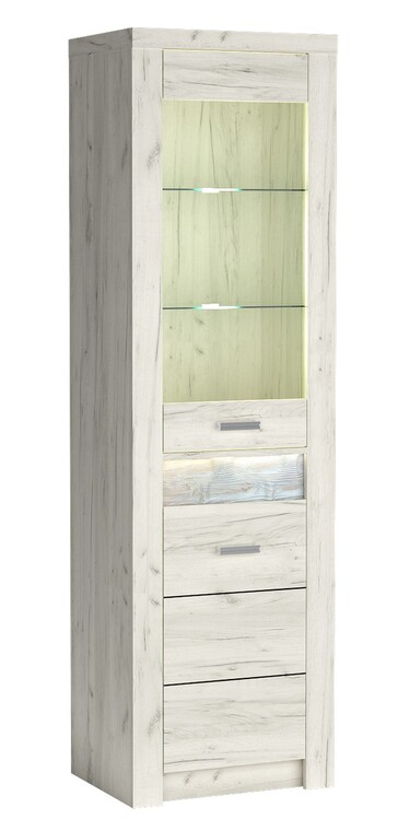 Vitrína ze sektorové řady. Za dvířky je 1 police. Systém je exkluzivní kolekce navržena v moderním duchu. Vsazením LED osvětlení do ozdobné rýhované lišty, které najdete v naší další nabídce k dokoupení, je zvýrazněn rustikální vzhled masivního dřeva. Možnost dokoupení LED bodového osvětlení i... více informací o zboží