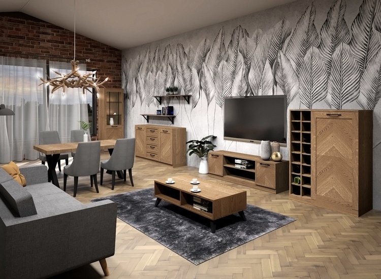 Vitrína dvoudveřová v nadčasovém provedení. Korpus je vyroben z přírodní dýhy v barvě dub rustikální, dvířka jsou vyrobeny z masivu v kombinaci s přírodní dýhou v zajímavém dekoru rybí kost v provedení dub rustikální olejovaný. Součástí vitríny je také LED osvětlení. Úchyty jsou kovové v barvě... více informací o zboží